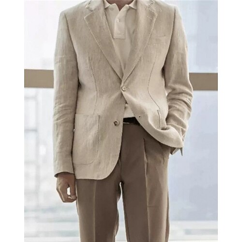 Herren Leinenblazer Blazer Geschäft Cocktailparty Hochzeitsfeier Mode Lässig Frühling Herbst 30 % Leinen 60% Polyester Einfach Tasche Knöpfe Bequem Einreihig Blazer Marineblau Beige