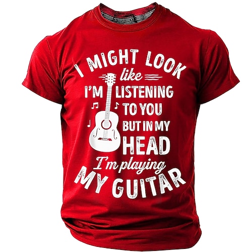 Ich sehe vielleicht so aus, als würde ich dir zuhören, aber in Gedanken spiele ich Gitarre. Lustiges T-Shirt mit Spruch, Vintage-Musikmotiv, humorvolles Geschenk für Gitarristen, Größen S, M, L, XL,