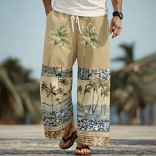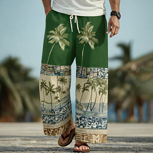 Per uomo Albero di Cocco Palma Piante Tropicali Pantaloni Pantaloni Larghi Pantaloni casual Misura del girovita medio Hawaiano All'aperto Vacanza Abbigliamento mare Coulisse elastica in vita