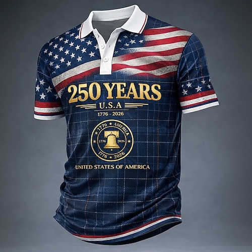 4. Juli 2026 250. Herren Amerikanische Flagge Veteranen Poloshirts Golfshirt Kurzarm Polo-Shirts Hemden mit Kragen Lässig Streetwear Urlaubskleidung Party-Outfits 3D-Druck Knöpfe Rote Marineblau Grün