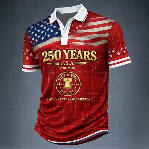 4. Juli 2026 250. Herren Amerikanische US-Flagge Golf Sport-Poloshirts Kurzarm Polo-Shirts Hemden mit Kragen Lässig Athleisure Festival-Outfit Knöpfe Sommer Rote