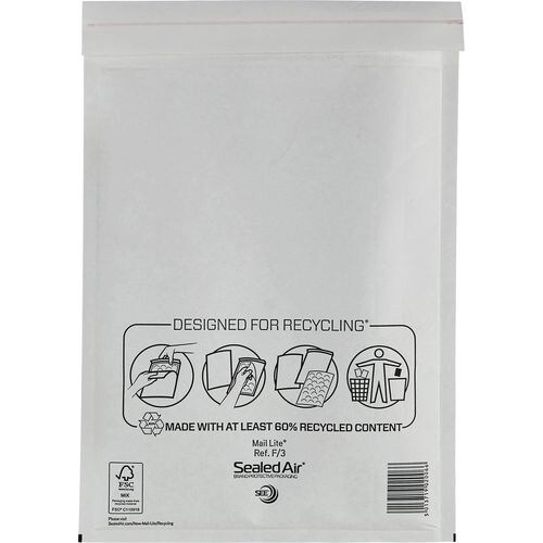 Mail Lite Luftpolster-Luftpolster-Versandtaschen F/3 Weiß Ohne Fenster 220 (B) x 330 (H) mm Abziehstreifen 79 g/m² 50 Stück