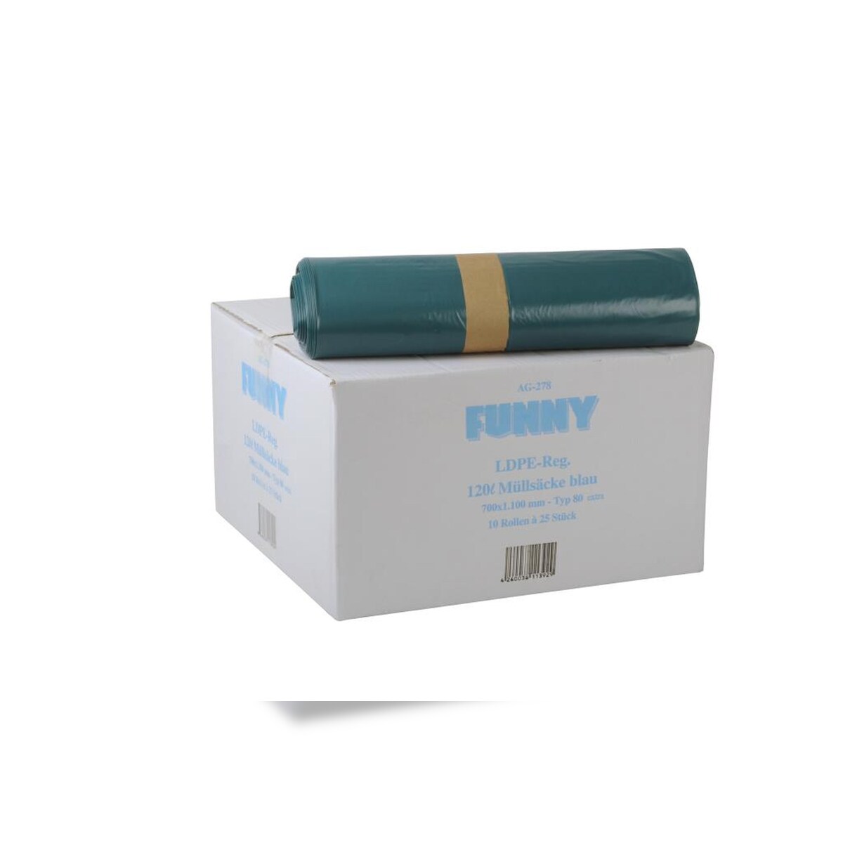 Plock GmbH Müllbeutel Funny - 250 Abfallbeutel - blau - ca. 120 L - Müllsäcke Typ 80 extra