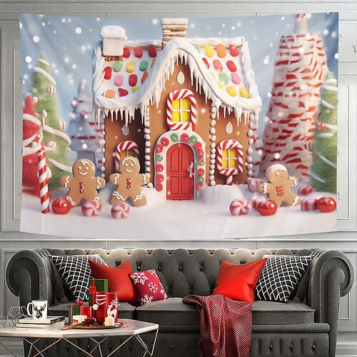 decorazioni natalizie arazzo appeso arte murale natale pan di zenzero bastoncino di zucchero grande arazzo decorazione murale fondale fotografico coperta tenda casa camera da letto soggiorno