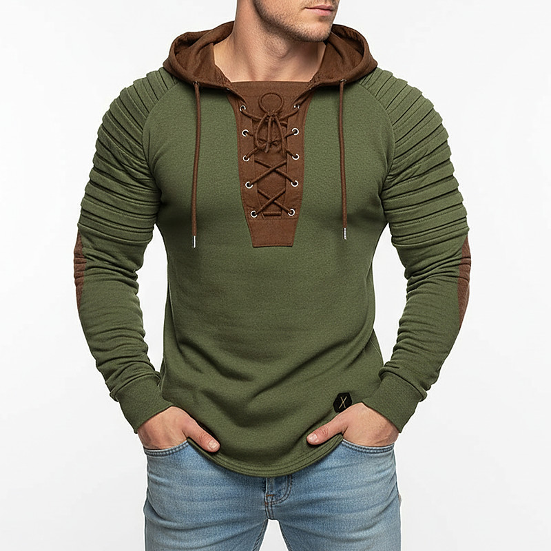 Men T Shirt Tee Top Long Sleeve Shirt Shirts With Elbow Patches Long Sleeve Hooded All Seasons Color Block Slim Pleated Fashion Designer Basic Lace up Patchwork Casual Vacation Street Black khaki