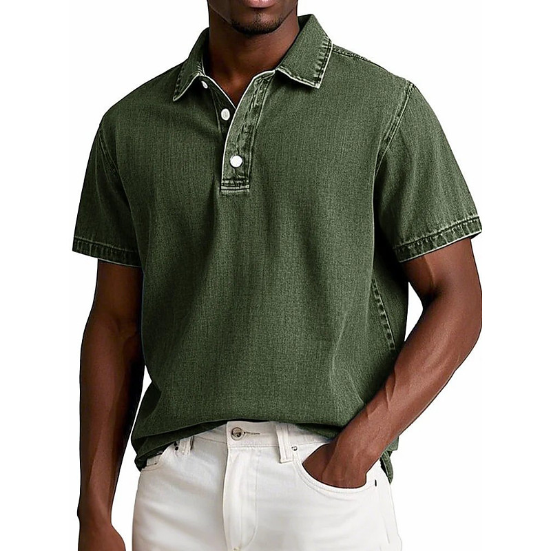 Men's Polo Shirt Golf Shirt Work Business Ribbed Polo Collar Classic Short Sleeve Basic Modern Solid Color Patchwork Button Spring Summer Regular Fit Light Green Light Red Blue Light Purple Khaki