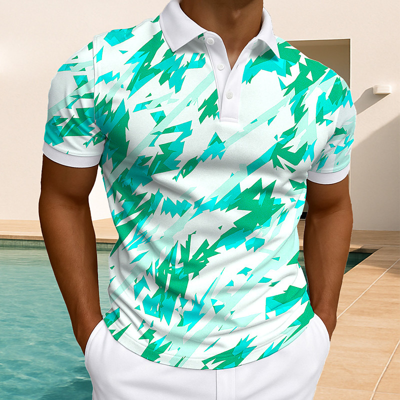 Men's Geometric Polo Short Sleeve Polo Shirts Collared Shirts Casual Athleisure Daily Wear Buttons Summer White Light Green Blue