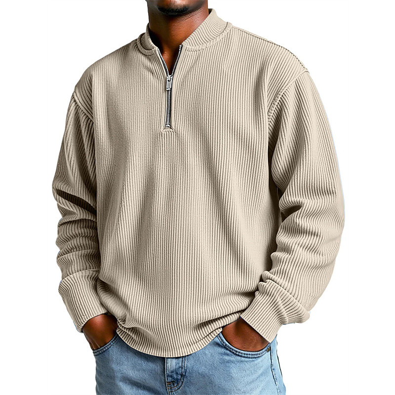 Men's Polo Corduroy Shirt Vacation Street Quarter Zip Long Sleeve Fashion Basic Plain Spring Fall Tailored Fit Blue Wine White Light Purple Green khaki Polo