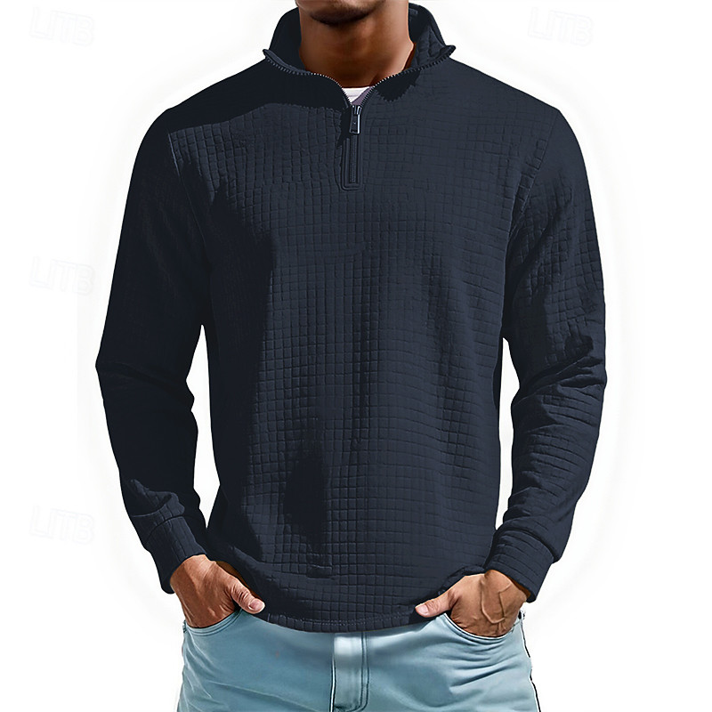 Men's Waffle Polo Shirt Quarter Zip Polo Daily Holiday Quarter Zip Long Sleeve Fashion Modern Plain Front Pocket Spring Fall Regular Fit Black White Navy Blue Light Grey Beige Waffle Polo Shirt