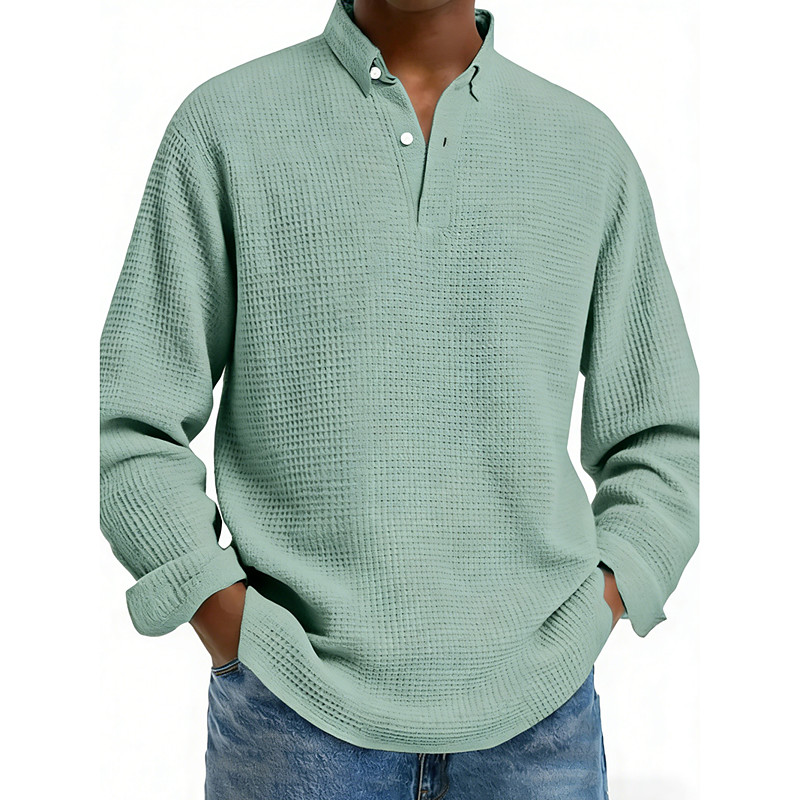 Men's Waffle Polo Shirts Polo Shirts Casual Street Lapel Long Sleeve Basic Modern Plain Buttons Spring Fall Regular Fit Dark Brown Black White Light Green Red Navy Blue Waffle Polo Shirts
