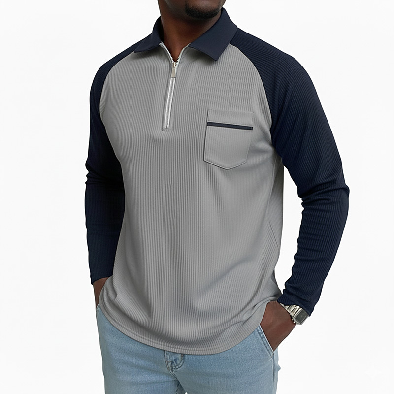 Men's Polo Shirts Quarter Zip Polo Vacation Street Quarter Zip Long Sleeve Fashion Basic Stripes Pocket Spring Fall Regular Fit Light Blue Black Navy Blue Dark Green Khaki Gray Polo Shirts