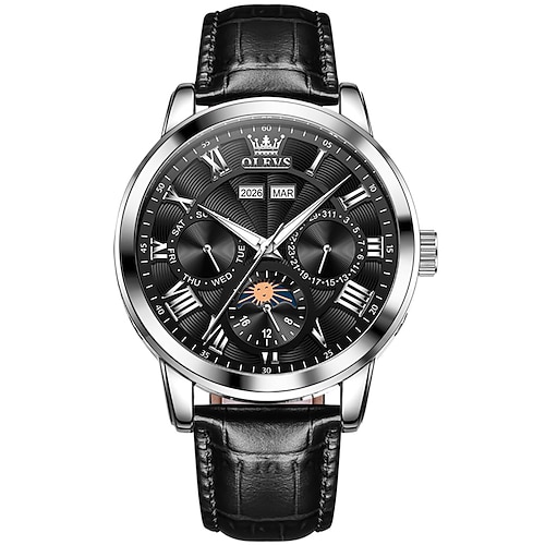 OLEVS Da uomo Orologio meccanico Creativo Lusso Moda Affari Scheletro cavo Automatico a Carica Automatica Tourbillon Fase Lunare Acciaio inossidabile Pelle Guarda