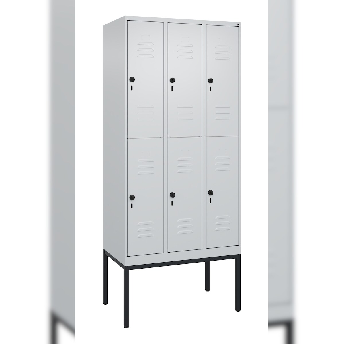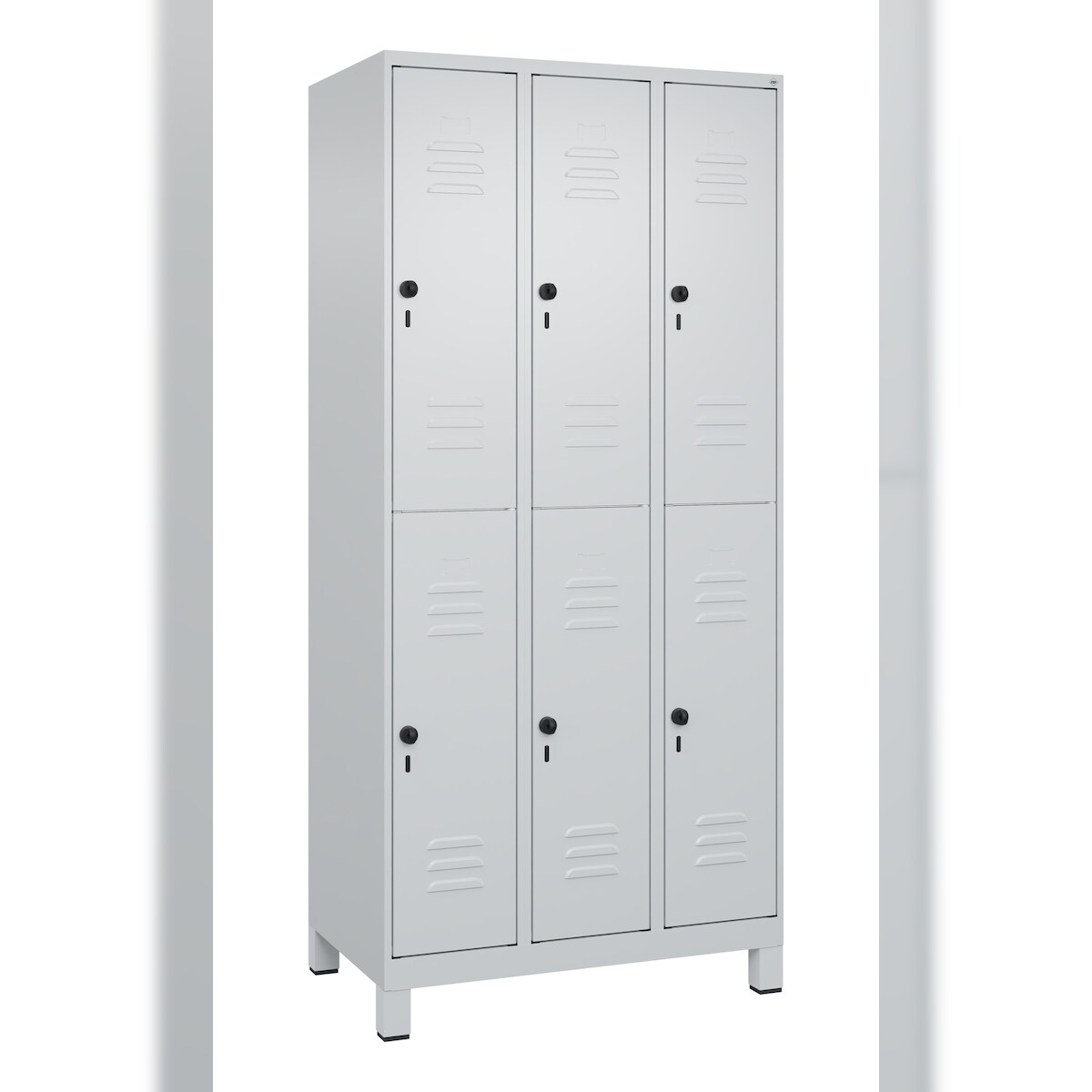 C+P Spind Classic PLUS, Füßen, 6 Abteile, HxBxT 195x90x50cm, Sicherheitsdrehriegel, Hellgrau/Hellgrau von PROREGAL