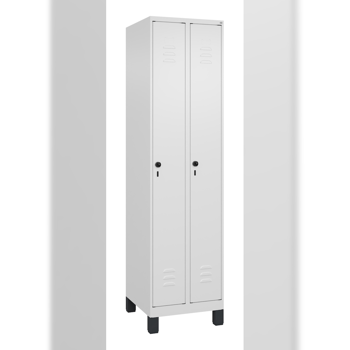 C+P Spind Classic PLUS, Füßen, 2 Abteile, HxBxT 195x50x50cm, Sicherheitsdrehriegel, Verkehrsweiß von PROREGAL