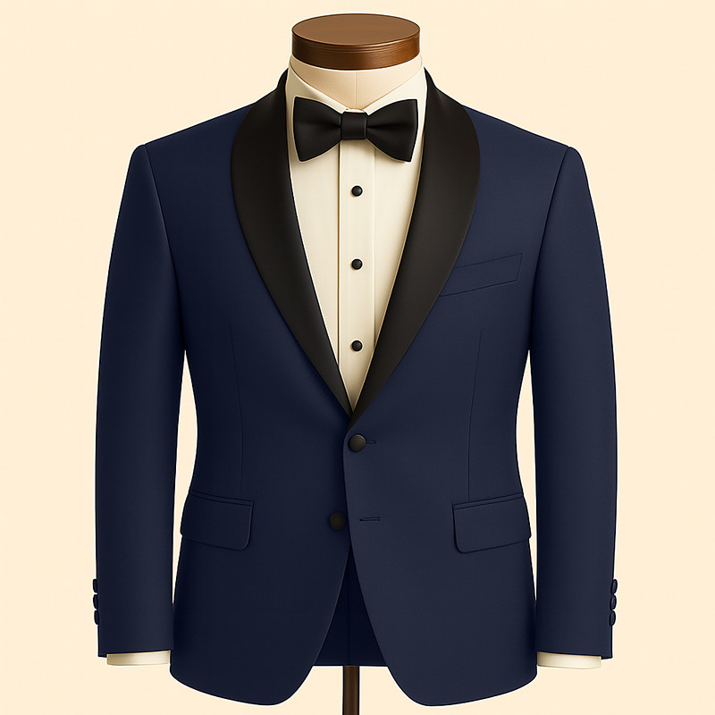 Men's Blazer Jacket Shawl Collar Fashion Retro Vintage Classic Solid Colored Blazer Navy Blue Slim Fit Single Breasted One-button