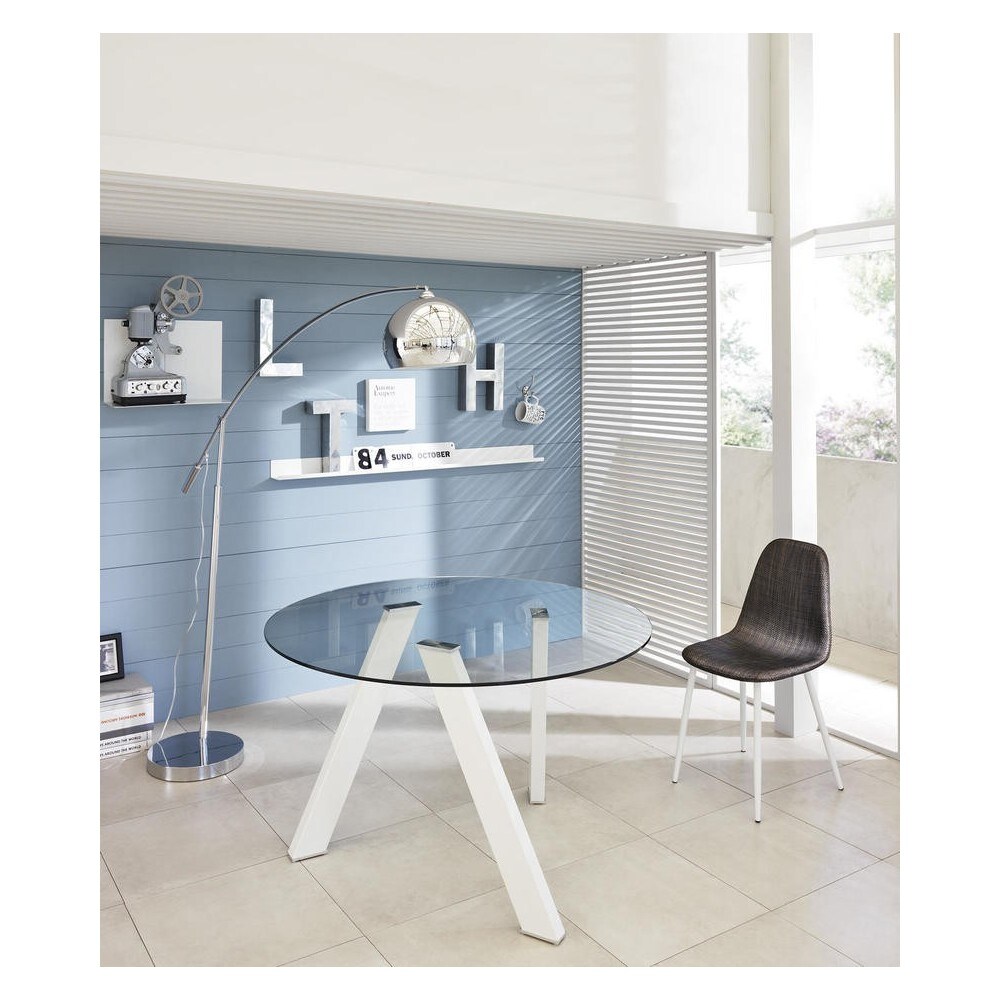 SOLOLED Fester Rondò-Tisch aus gehärtetem Glas und weißen Beinen