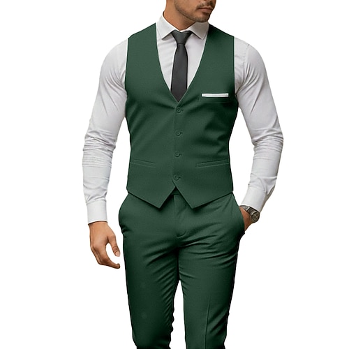Uomo Affari Casuale Completi in Tweed Bavero classico Nero Borgogna Affari Formale Tinta unita Vestibilità su misura 2 pezzi Monopetto Due Bottoni
