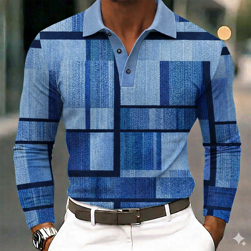 Men's Geometric Polo Shirts Golf Shirt Long Sleeve Polo Shirts Collared Shirts Business Casual WorkWear Formal Wear Festival Wear 3D Print Buttons Fall Winter Blue Purple Brown