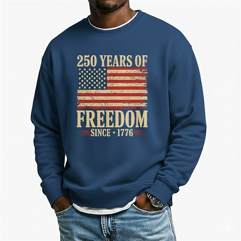 Men's Graphic American US Flag 250th Anniversary Sweatshirt Sports Fashion Daily Classic Crew Neck Outdoor Vacation Blue Black Red Green Printing Spring Fall Designer S M L XL XXL XXXL