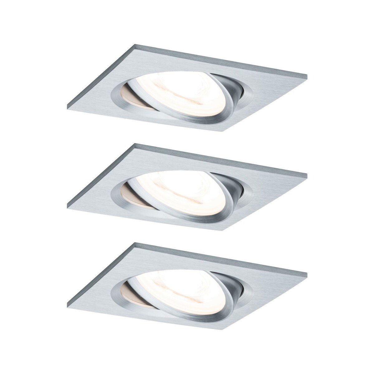 Paulmann LED Einbauleuchte 3-Step-Dim Nova Basisset schwenkbar eckig 84x84mm 50° GU10 3x6,5W 3x460lm 230V dimmbar 2700K Alu gedreht 93474
