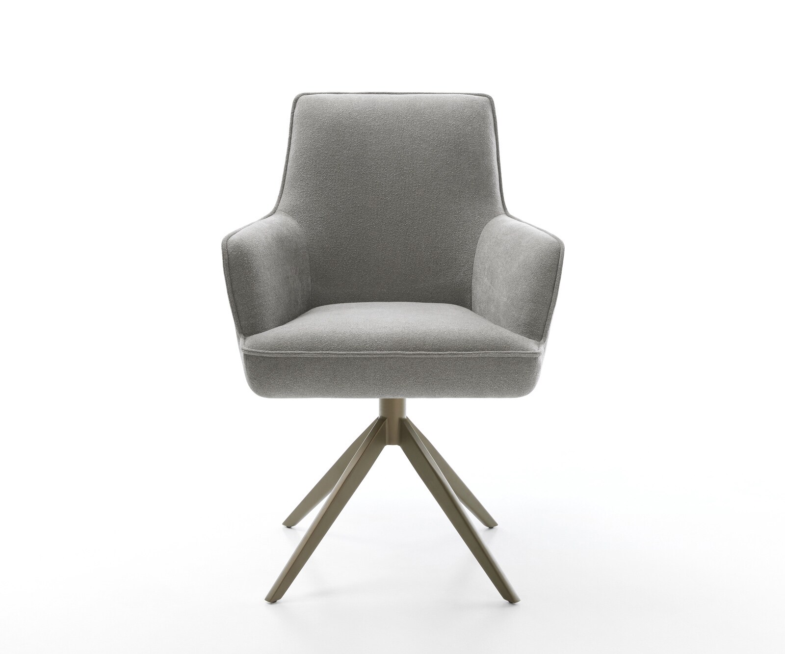 DELIFE Draaistoel Heira-Flex met armleuning zachte stof met structuur grijs kruisframe breed afwerking met titanium 360° draaibaar rocker-functie pocketveer kern