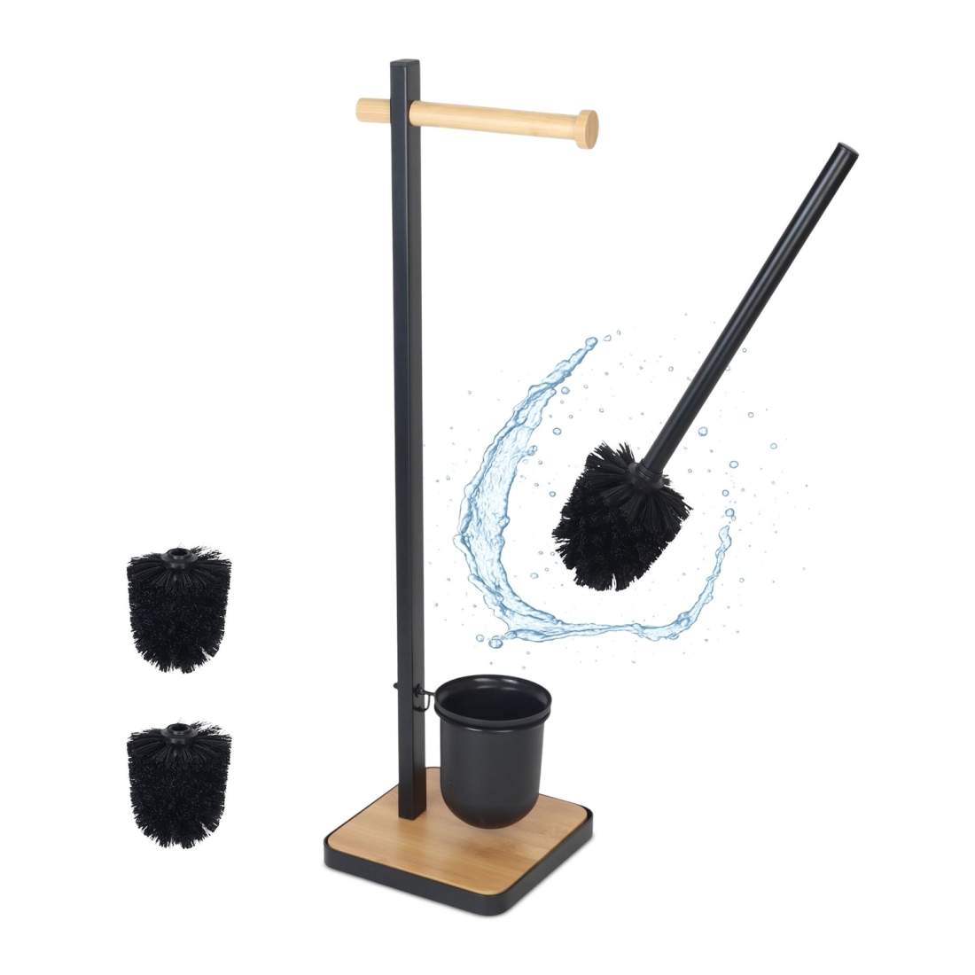 Toiletbørste- og papirholder i bambus og stål