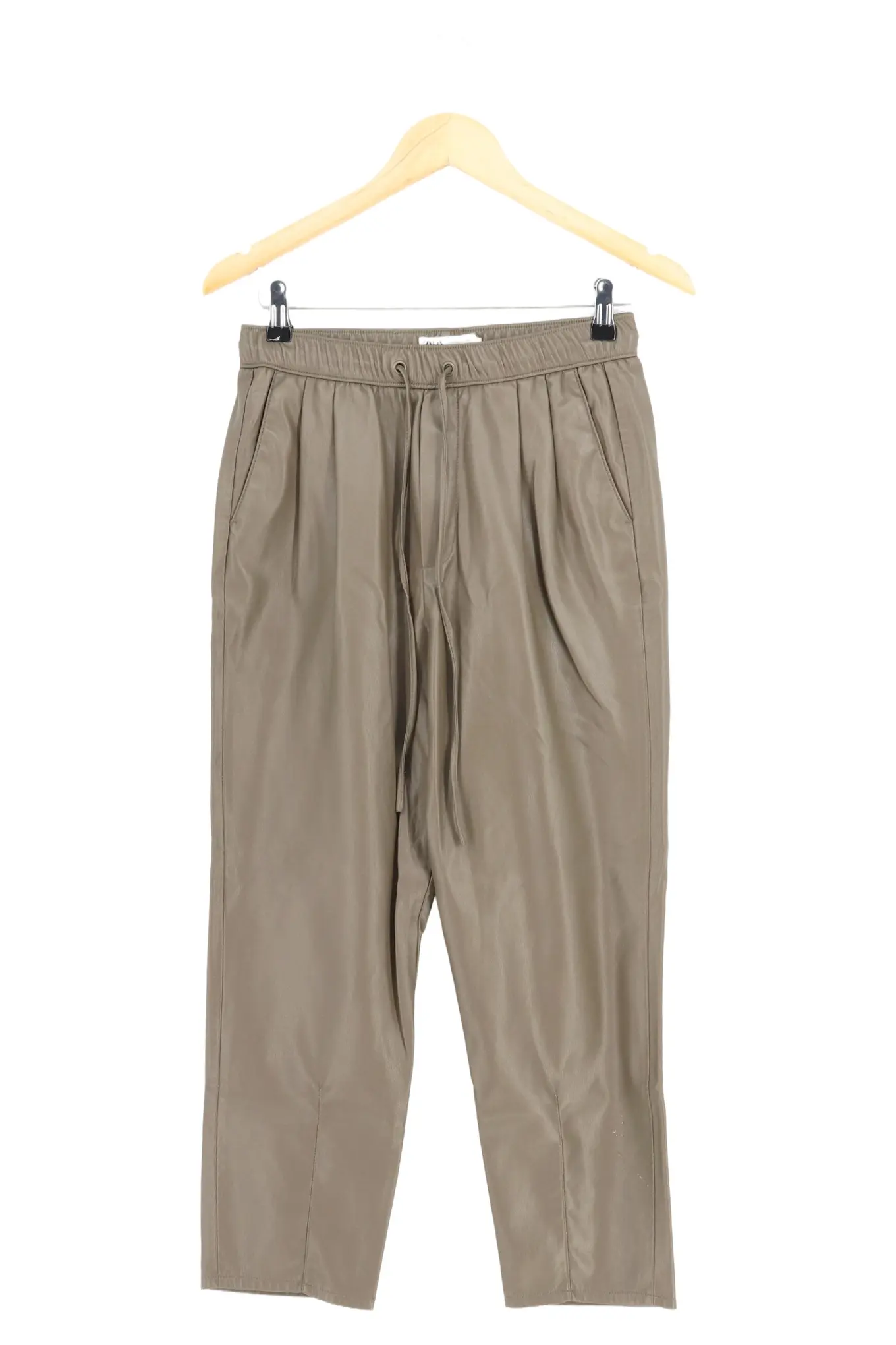 ZARA Damen Kunstlederhose XS Taupe Lang Casual