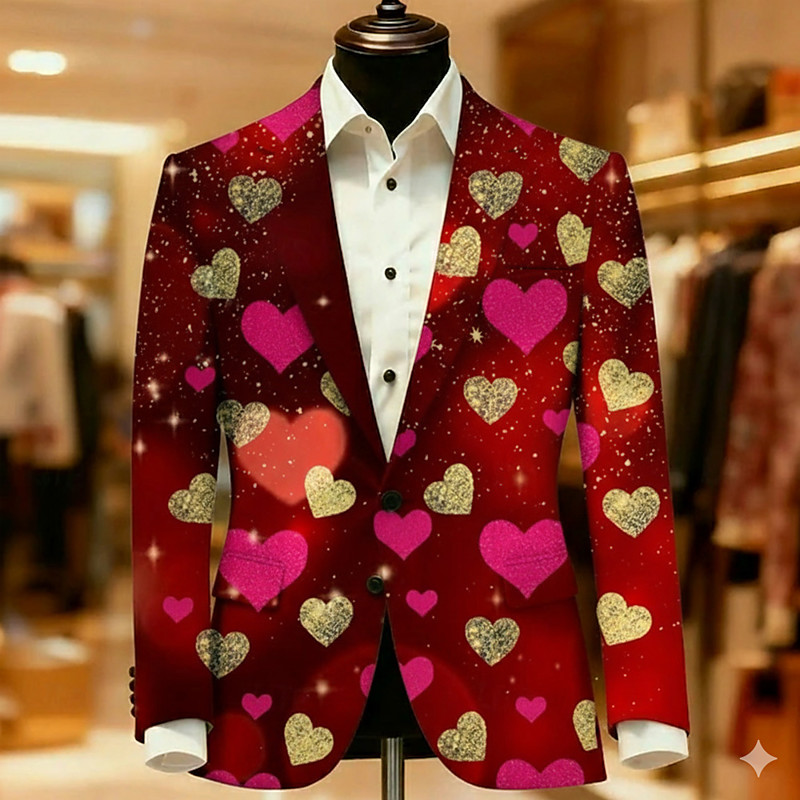 Valentine's Day Men's Heart Blazer Jacket Coat Fashion Comfortable Breathable Artistic Casual Daily Party Evening Wear Festival 3D Print Buttons Multi Pocket All Seasons Notch Long Sleeve Red 1 Red 2