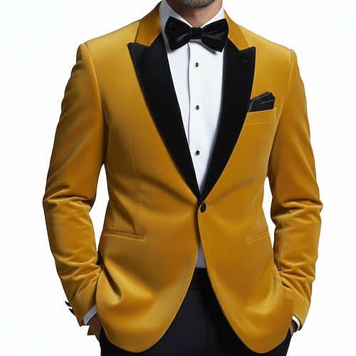 giacca blazer in velluto da uomo con chiusura a colletto, moda natalizia, festa, blazer tinta unita, giallo, rosso e blu, vestibilità su misura, monopetto, un bottone