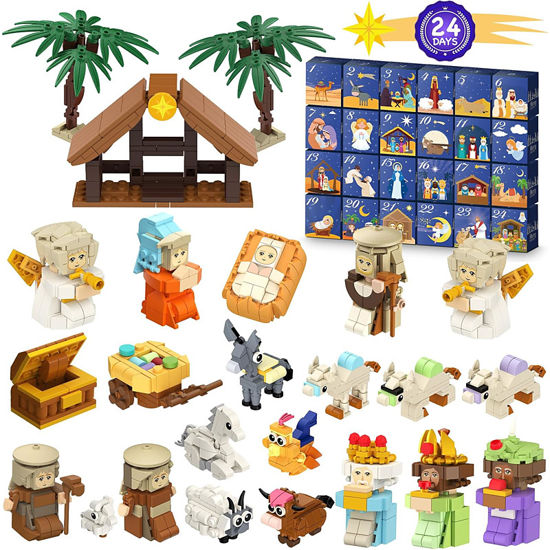Nativity Advent Calendar 2025 Christmas Gift for Kids 24 Days Building Blocks Kits Countdown Calendar Set, Stocking Stuffer Building Toys for Boys, Girls, Teens Adults
