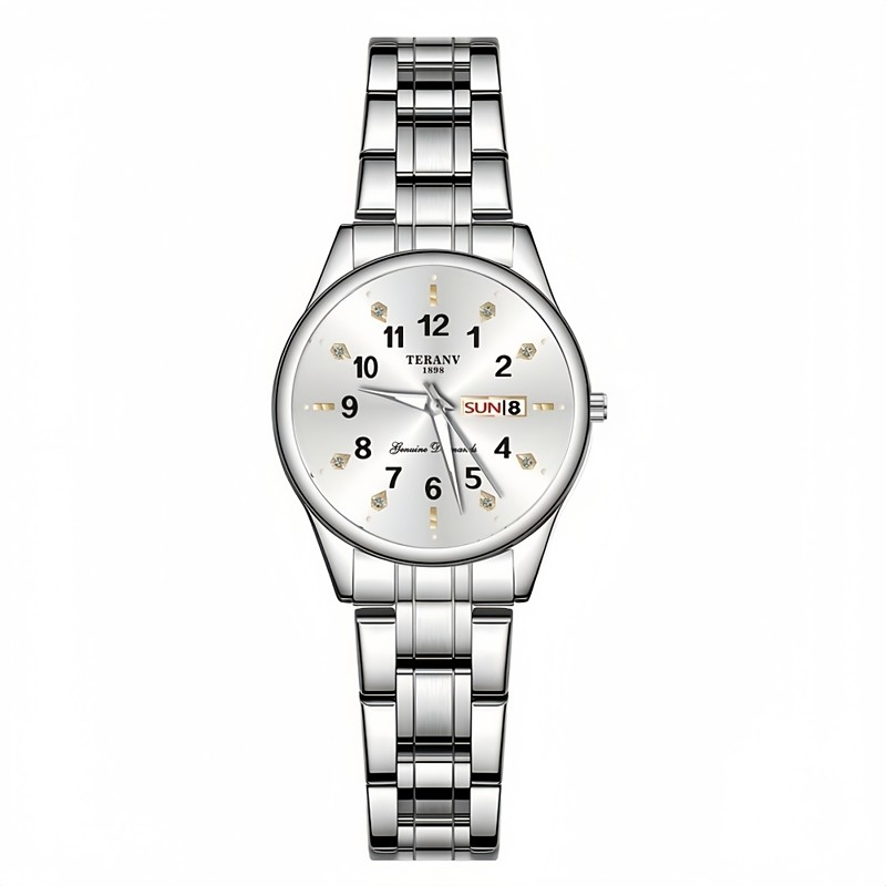 Ladies' Quartz Watch Is Fashionable Casual and Elegant with A Rhinestone Digital Scale and Dual Calendar Luminous Dial - The Best Gift Choice for Ladies