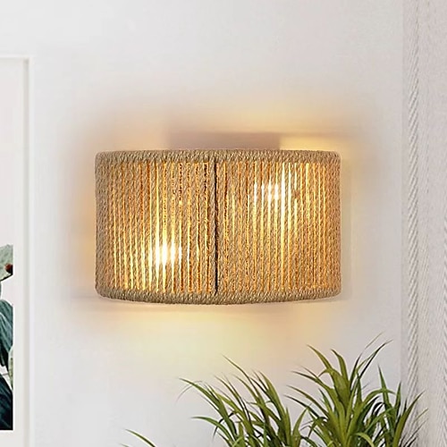 Applique da parete in rattan stile boho, lampada da parete in corda di canapa intrecciata a mano, illuminazione per camera da letto, soggiorno, corridoio, veranda 110-240 V