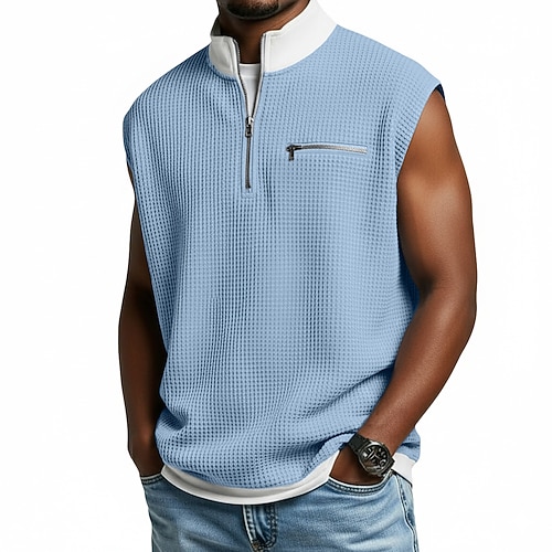 Per uomo Canotta a nido d'ape Canotta Maglietta smanicata Canottiera Senza Maniche Maglione Mezza zip Estate Primavera Semplice Moda Designer Casual Tasca con cerniera All'aperto Palestra Uscire Nero