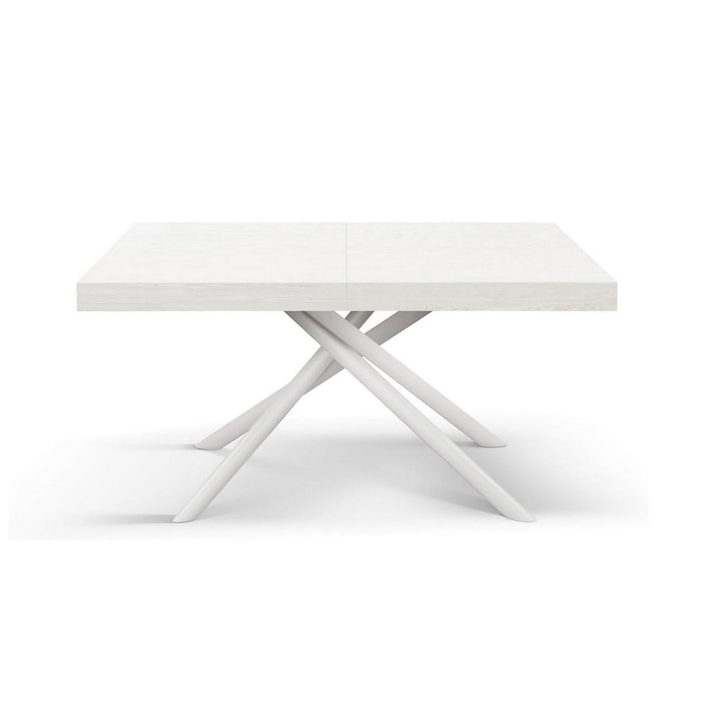 Tavolo in legno,bianco frassinato, base bianca, allung.160x90-240x90cm