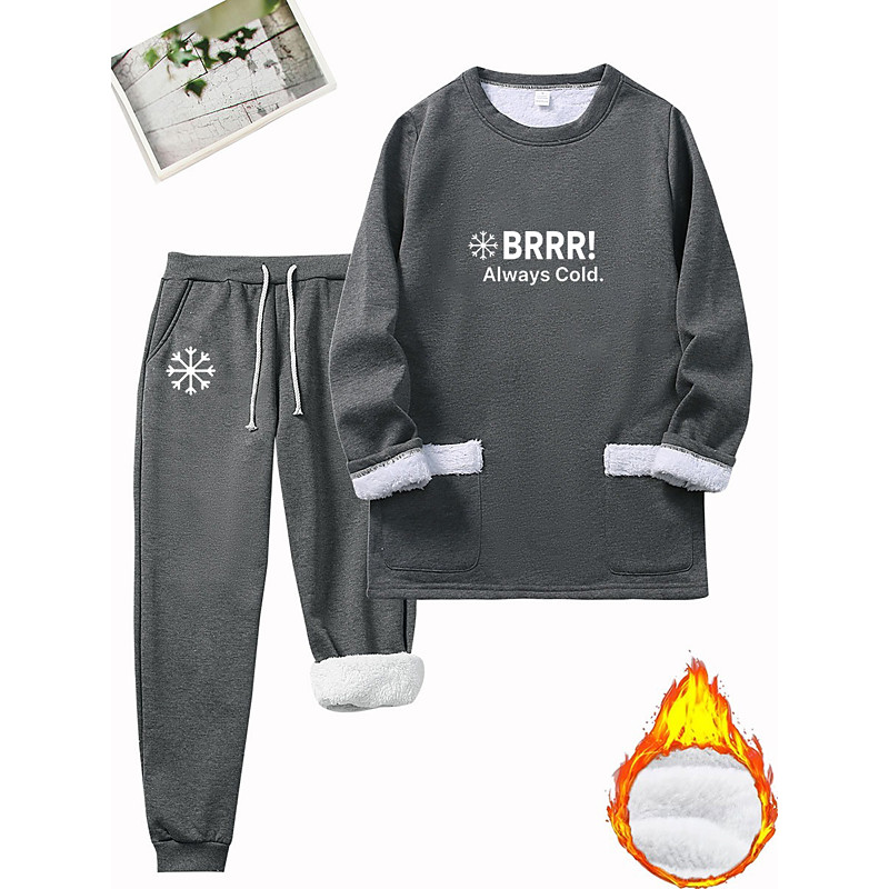 Women's Warm Daily Fleece Lined Pullover Hoodie Sweatshirt Two Piece Sets Tracksuit Pants Sets Long Sleeve Crew Neck Letter Drawstring Print Casual Daily Black Dark Pink Blue Fall Regular Fit
