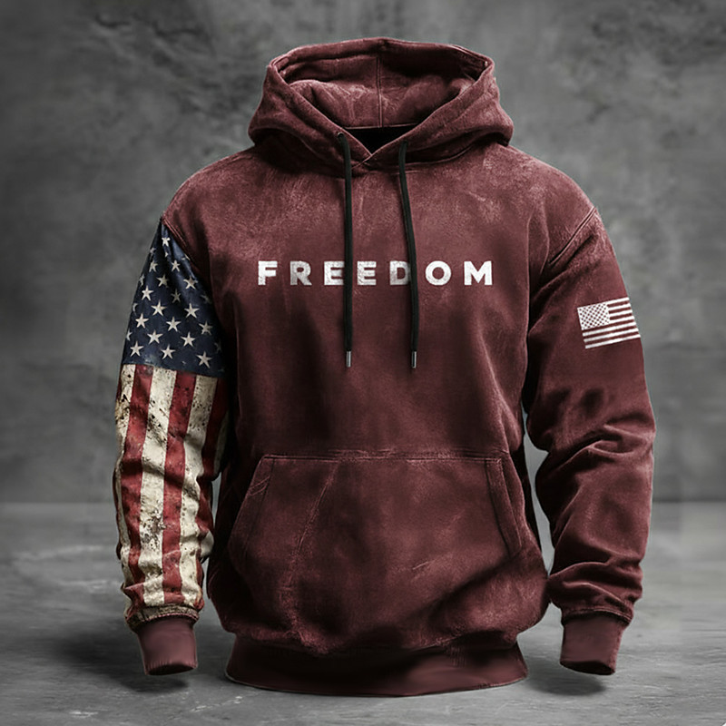 US America 250 Year Anniversary Men's American US Flag Freedom Hoodie Sweatshirt Fashion Casual Long Sleeve Crew Neck Hooded Outdoor Office Streetwear Blue Black Red Drawstring Graphic Fall