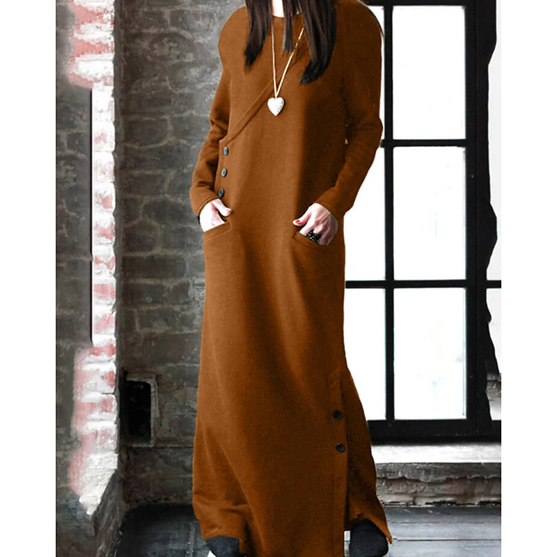 Women's Long Dress Maxi Dress Hoodie Dress Sweatshirt Dress Modern Vacation Going out Regular Fit Plain Long Sleeve Crew Neck Black Wine Army Green Orange Fall Winter