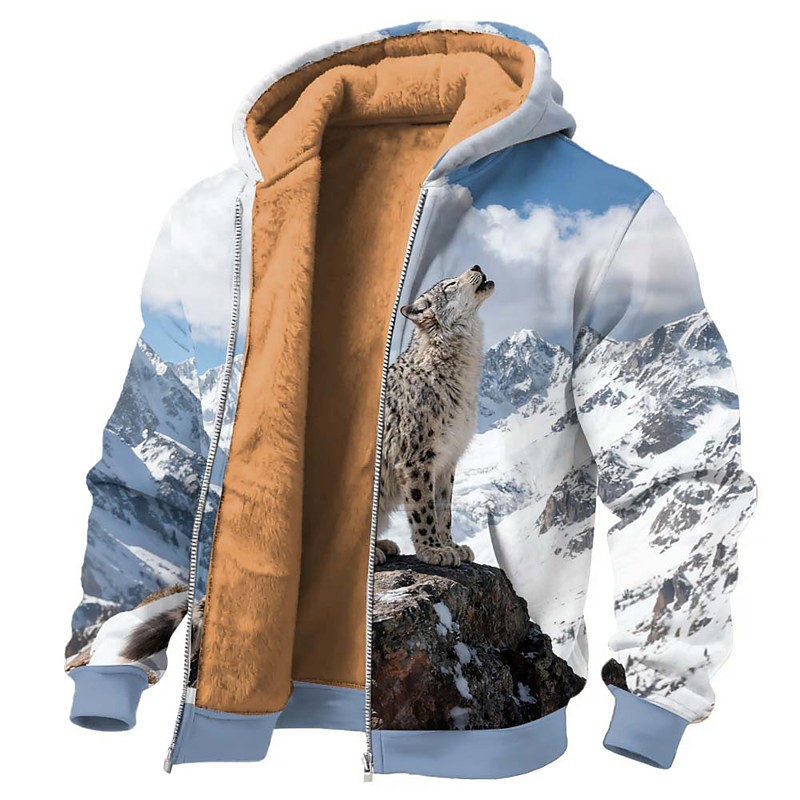 Men's Wolf 3D Print Fleece Hoodie Jacket Sweatshirt Classic Military Hunting Crew Neck Outdoor Camping Blue 1 Blue 2# Zip Up Fall Winter Designer S M L XL 2XL 3XL
