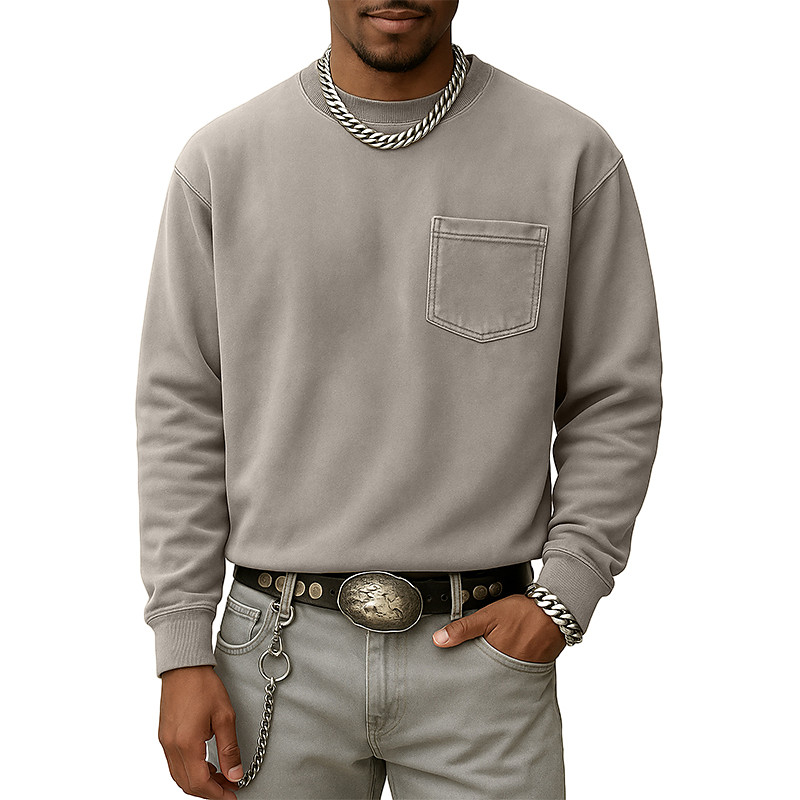 Men's Sweatshirt Pullover Blue Wine Red Yellow Army Green Navy Blue Crew Neck Plain Patchwork Pocket Sports Outdoor Casual Daily Vintage Streetwear Sportswear Spring Fall Clothing Apparel Hoodies