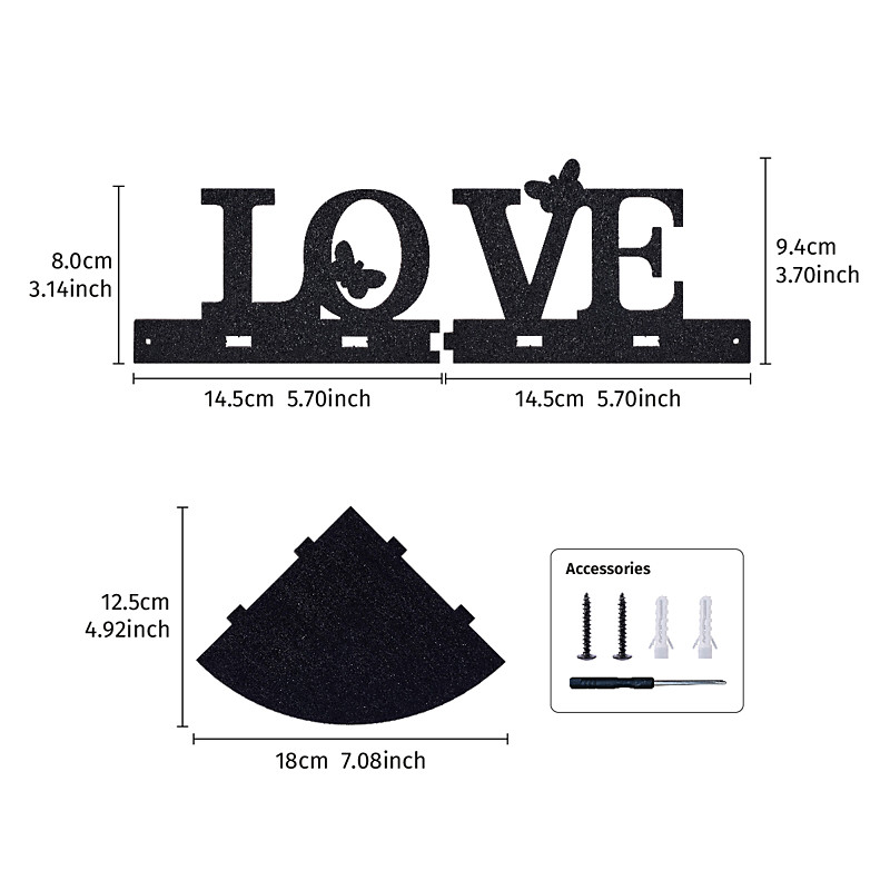 Valentine's Day Butterfly LOVE Letter Floating Shelf, Wooden DIY Wall-Mount Corner Rack, Decorative Display Shelf for Weddings, Anniversaries, Parties, Living Room Décor