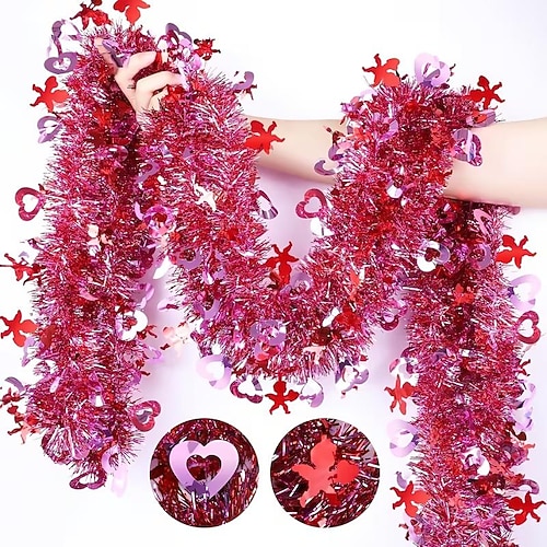 Valentinstags-Girlande (200 cm) mit rotem Amor und rosa Herzen – glänzende, metallische Girlande für den Weihnachtsbaum im Innenbereich Zubehör für Hochzeitsfeiern im Freien