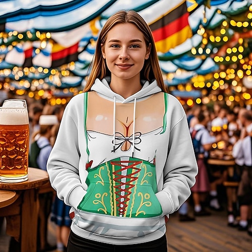 Stampa Manica a Vescovo Felpa con cappuccio Birra Oktoberfest Tasca Frontale Grafico per Per donna Adulti Stampa 3D per Carnevale Birra Oktoberfest Vacanza Feste