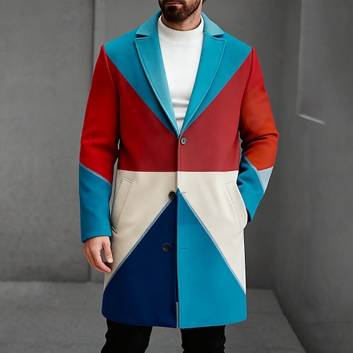 Per uomo Geometrico Blocco di colori Giacca Leggera Cappotto Calore Termico Casual Affari Quotidiano Stampa 3D Bottoni Tasca Frontale Primavera Autunno Inverno Dentellato Manica Lunga Bianco Rosso Blu