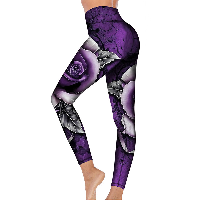 Women's Yoga Pants Butt Lift Tummy Control High Waist Gym Workout Running Fitness Tights Leggings Floral Print Purple Fall Winter Sports Activewear High Elasticity