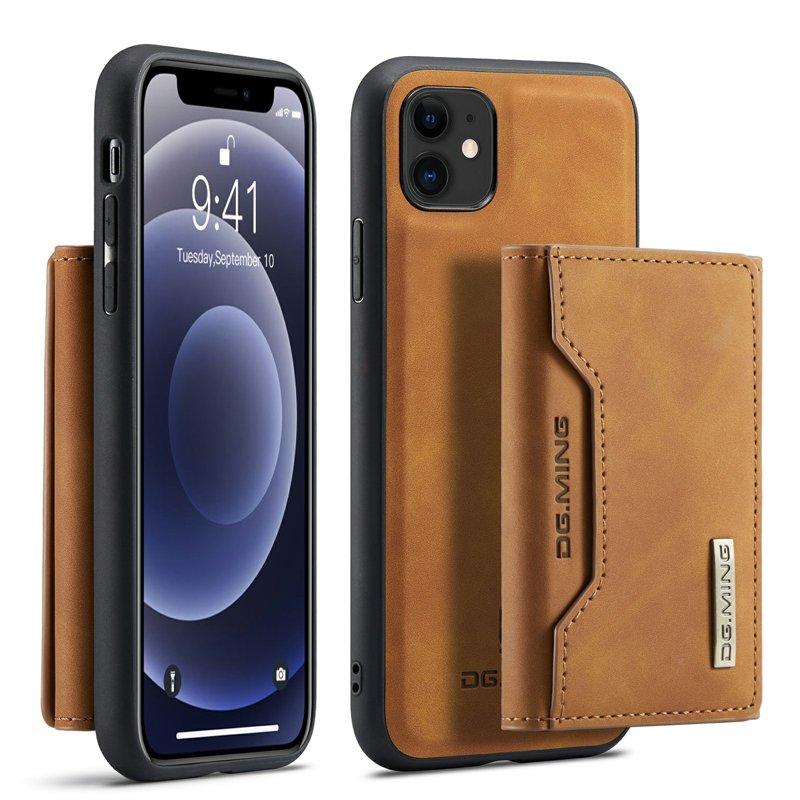 DG.MING 2-i-1 Konstläder Plånboksfodral iPhone 11 6.1 tum - Brun