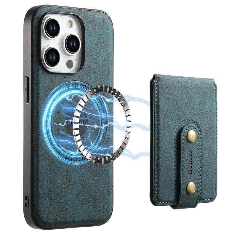 DENIOR D14 iPhone 15 Pro Kortfodral MagSafe PU+TPU+PC Blå