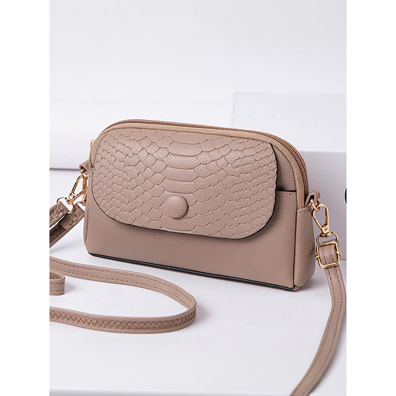 Women's Faux Leather Crossbody Wristlet Bag with Croc-Embossed Flap – Elegant Small Shoulder Purse for Daily Use, Travel Work