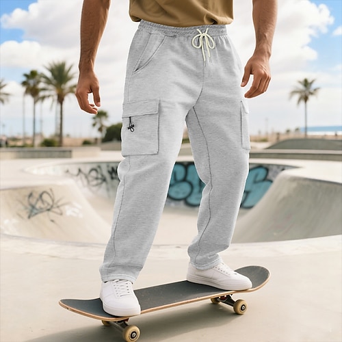Herren Cargo-Jogginghose Jogginghose Hose Kordelzug Tasche Elastischer Bund Einfach Komfort Sport im Freien Täglich Mode Lässig Schwarz Weiß Mikroelastisch
