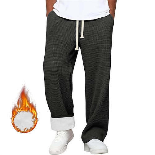 Herren Fleecehose Hose Winterhose Baggy-Hosen Waffelhose Kordelzug Tasche Elastischer Bund Einfach Komfort Warm Sport im Freien Täglich Mode Lässig Blau Schwarz Mikroelastisch