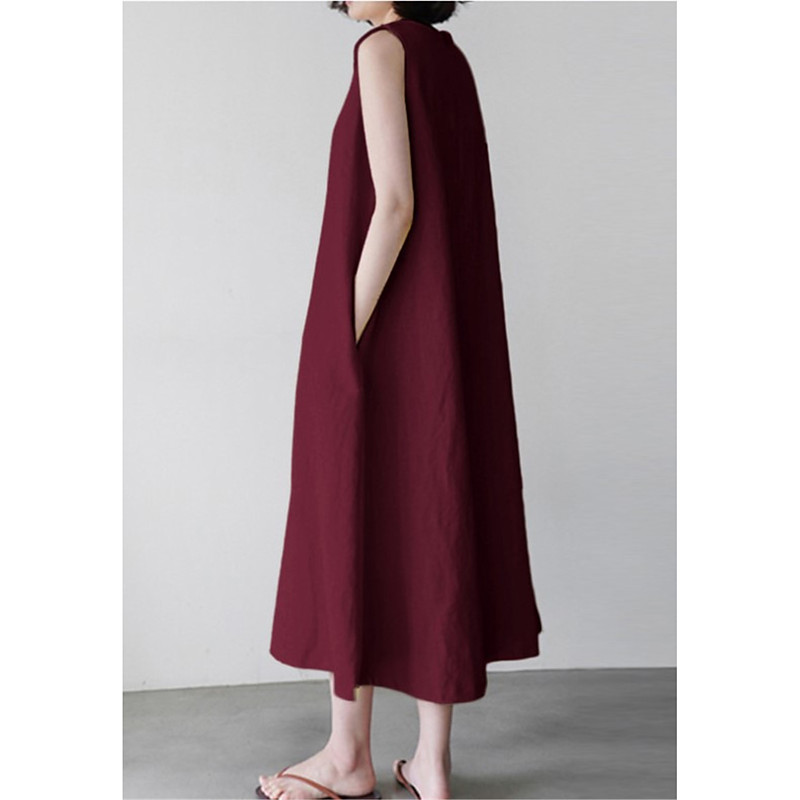 Women's White Wine Navy Blue Summer Spring Midi Dress White Dress Cotton Linen Dresses Sundress Casual Vacation Daily Loose Fit Plain Crew Neck